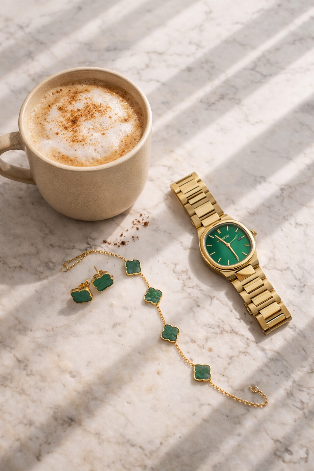 More than accessories—our pieces are built for comfort, quality, and conscious wear. Crafted from marine-grade stainless steel and finished with a durable gold-toned coating, so you can wear them daily, worry-free.